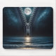 Uma lua de cheio brilhante emerge da abertura do céu noturno, lançando um brilho suave sobre o oceano tranquilo abaixo