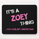 É uma coisa de Zoey que você não entenderia - tipografia de primeiro nome em uma fonte rosa-quente brilhante em pincéis pintados e cartazes de estilo estêncil aflitos.