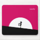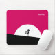 Um mouse personalizado com uma criatura zombie legal. Esquema de cor rosa e preto a negrito vibrante. Uma silhueta zumbi com braços estendidos na caça por cérebros. Uma grande lua branca ilumina por trás.