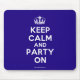 Com base no original "Manter Calmo" e ... poster, este creme e azul "Manter Calmo e Festa no Mousepad" apresentam uma fonte personalizada que corresponde ao original.