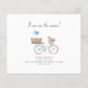 Em movimento na minha bicicleta, mude de endereço de cartão de anúncio com uma bicicleta feminina de cor d'água com um cesto de flores e luggages no rack. Perfeito para informar os amigos e a família sobre seu novo endereço e onde a provável festa de aquecimento de casa acontecerá. Adicione seus novos detalhes clicando no botão "Personalizar" acima
