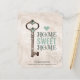 Anuncie que se mudou para sua nova casa com este cartão elegante. Este design de chic apresenta uma chave de esqueleto vintage decorada por uma joia sobre um fundo de uma damáscara bronzeada. A parte traseira da placa tem um plano de fundo correspondente com uma mensagem a ser personalizada. Perfeito para recém-casados e famílias. Desenhada por Susan Coffey.