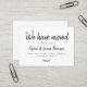 Elegante Simples Minimalista que Mudamos" Whimsical Calliografia Novo Anúncio de Movimento Doméstico Inserção de Cartão. Deixe seus amigos e familiares saberem seu novo endereço usando este texto elegante e elegante, escrito à mão, escrito com letra tipografia (ou caligrafia) do texto "Nós nos movemos" na frente e no verso, "Por favor, mantenha-se em contato!", em preto e branco. Fácil de personalizar com seus próprios detalhes.