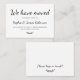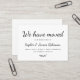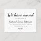 Simples Mínimo "Movimentamos" A caligrafia Script do Novo Anúncio de Movimentação em Casa insere a placa de gabinete. Deixe seus amigos e familiares saberem seu novo endereço usando este cartão minimalista texto elegante e bonito escrito com letra tipografia (ou caligrafia) do texto "Nós Mudamos" na frente e no verso do texto "Por favor, mantenha-se em contato!" a preto e branco. Fácil de personalizar com seus próprios detalhes.