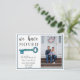 Avise seus amigos e família sobre seu novo endereço com este cartão postal de anúncio de chave rustica. Este modelo apresenta fotos da família para você personalizar e uma chave azul vintage com marinho azul na parte traseira da placa. Texto totalmente personalizável, muito simples de editar com seus detalhes pessoais.