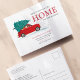 Não há melhor altura para enviar as saudações da sua época e as notícias da sua nova casa com este moderno carro vermelho com uma árvore de Natal no telhado para que eles saibam que você está passando as Férias em uma nova casa. O texto neste modelo é simples de personalizar clicando no botão "Personalizar" acima.