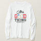 "Mrs. Good Thing Women's T-Shirt" is a celebratory couples gift as a Valentine's gift for wife or even lovers who plan to make her boyfriend her husband. Great gift for any occasion, has Proverbs 18:22 text, wedding ring, and can be used on couples hoodie or any product you desire. A customizable t-shirt that you can personalize the text with your own message or leave as is.