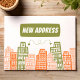 Padrão de estilo de desenho animado com edifícios retrorreflectores laranja e verdes para um novo anúncio de endereço muito exclusivo. ★ Por favor, verifique a coleção correspondente para COORDENAR ITENS.¨¨¨.