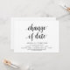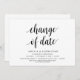 Cartão de mudança de data. Este é o convite para a festa de casamento remarcado (adiado / adiamento), no tema de design minimalista moderno e limpo, com fonte preta.