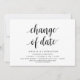 Mudar a data do cartão. Este é o convite para a festa de casamento remarcado (adiado / adiamento) cartão (Mudar a data), no tema de design minimalista moderno simples e limpo, fonte preta.