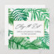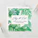 Caligrafia elegante com folhas de palmeira tropicais chic em aquarela mudam o anúncio de adiamento do casamento. Este lindo anúncio é uma maneira simples de informar aos convidados que a data do seu casamento está sendo remarcada devido a circunstâncias imprevistas.