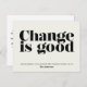 Mudança É boa! Deixe todos saberem que você mudou de endereço com este anúncio de mudança clássico em branco e preto. Personalize a frente com seu endereço e nome e no verso há espaço para uma mensagem. Outras cores disponíveis.