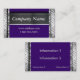 Pnha seu nome da empresa e a outra informação sobre a parte dianteira e a outra informação na parte de trás desta vista moderna, profissional, esperta, cartão de empresa. O fundo é roxo na parte dianteira e na parte traseira que podem facilmente ser mudadas. Apenas clique sobre "personalizam-no" e então "edite" e "fundo" para mudar então a cor roxa. É adicionada uma beira legal do teste padrão da placa do diamante com um olhar 3d em ambos os lados. Cartão simplesmente bonito, clássico e elegante, original, relativo à promoção para algum negócio!