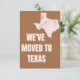 Então você se mudou para Dallas! Diga aos seus amigos e familiares que você está se mudando para o Grande D com este anúncio em movimento ao estilo sul. Personalize seus detalhes no verso com as informações de contato necessárias. ****Se você quiser um estado diferente, por favor, envie uma mensagem e eu posso ajudá-lo com isso.*** Por favor, note que criar o arranhão do design form e fazer o upload para o Zazzle requer um trabalho personalizado. Posso providenciar uma pequena taxa de design.