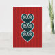 Muitos cartões de natal de amor apresentam 3 corações verdes brilhantes com bordas de pérolas brancas sobre fundo vermelho listrado. Cartões de natal excelente!