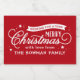 Etiquetas de presentes de feriado personalizadas. Esta design festiva apresenta tipografia caprichosa em cores vermelha e branca. A mensagem dizia "Desejar-te um Natal Muito Feliz". Use as ferramentas de design para editar as fontes e as cores.