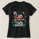 Camiseta familiar bonita e engraçada com a redação "Sou muito fofo para suéteres feios" em letras brancas modernas decoradas com Árvores de Natal, flocos de neve, pequenos sinos de ouro, um chapéu de Papai Noel vermelho e folhas sagradas.
