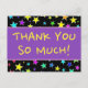Este design de cartão-postal animado e personalizado apresenta a mensagem "MUITO OBRIGADO!" na frente, juntamente com uma mensagem personalizada no verso. Poderia ser usado para oferecer obrigados a alguém que fez um ato especial.