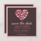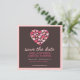 Um coração de muitos corações em tons bonitos de rosa e fúcsia, tudo em um rico fundo marrom-chocolate, faz um ótimo e divertido design para um anúncio moderno de save the date.
