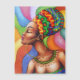 Retrato estilizado de mulher africana, vestida e cercada por cores brilhantes do Design de Tecido de cera tradicional. Roteiro original de direitos autorais BluedarkArt.