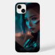 Mulher asiática lendo à noite em cidade do futuro