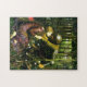 Represa do belle do La de John William Waterhouse sem o quebra-cabeça do mercie. Pintura a óleo em canvas desde 1893. O pintor John William Waterhouse do Pre-Raphaelite tirou regularmente em temas literários, e a mulher bonita sem compaixão é inspirada por um poema 1820 publicado pelo poeta inglês John Keats. Um cavaleiro na armadura de brilho olha para baixo nos olhos de uma mulher bonita enquanto se senta em um copse luxúria das árvores. A menina veste um vestido roxo com bolinhas brancas na saia e em um coração cor-de-rosa na luva. Seu cabelo é louro escuro e é cercada por flores bonitas e pela grama verde escuro. Um grande presente para fãs de J.W. Waterhouse, Pre-Raphaelites, de Keats, e da pintura inglesa romântica.