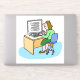 Mulher branca trabalhando em um adesivo de computa