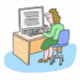 Ilustração de funcionário do Office. Desenho de uma trabalhadora de escritório em sua mesa. Vinheta mostrando uma mulher branca trabalhando em um escritório em seu computador.