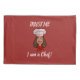 Cabeça de chef com chapéu, corcunda vermelha e texto personalizado.