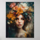 Mulher com Impressão de Arte de Cabeça Flor
