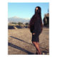 Mulher de cabelo comprido e a fotografia das montanhas.