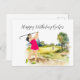 A mulher do golfe está jogando golfe. A golfista de aniversário continua enquanto ela balança seu clube. É um belo dia para o golfe. Ofertas para treinador, instrutor, professor, amigos, mãe, pai, namorada/namorado, colega de trabalho, anfitrião, vizinho, ele/ela, casais, avós, chefe, filhos, melhor amigo, família, sogros, esquadrão, equipe,