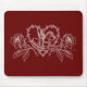 Escuro - mousepad vermelho e branco que caracteriza um design gráfico ocidental.
