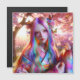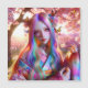 Bonito mulher rosa e púrpura com efeito místico num fundo verde e borboletas cor-de-rosa etéreo. Seu cabelo parece um bonito prisma.