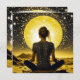 Bonito noteca espiritual. Arte mística ai mostrando uma cena etérea de uma mulher meditando antes de uma lua de cheio numa noite estrelada.