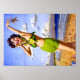 Mulher na poster verde de biquíni