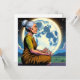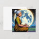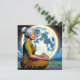 Meditação de Mulher Mais Velha debaixo de uma lua de cheio. Cartão de vazio temático Iluminismo Espiritual em um estilo de banda desenhada ilustração aérea hiperrealista.