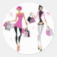 O design perfeito para quem gosta de comprar. Isto tem duas mulheres que têm comprado. Ambos caminham segurando uma série de sacos de compras. Essa mulher comprando design parece excelente nesses adesivos. Perfeito para si mesmo ou como presente