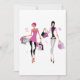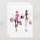 O design perfeito para quem gosta de comprar. Isto tem duas mulheres que têm comprado. Ambos caminham segurando uma série de sacos de compras. Essa mulher comprando design parece excelente nesses convites