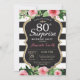 Convite do aniversário do 80 da surpresa para mulheres. A festa de aniversário preta e Dourado convida. Brilho Dourado. Flor floral da aguarela cor-de-rosa. Listras preto e branco. Quadro. Digitas Printable. Para uma personalização mais adicional, clique por favor "personalizam-no" botão e usam-nos nossa ferramenta de design para alterar este modelo.