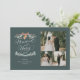 Celebre sua primeira temporada de festas como um casal casado com este elegante cartão com fotos "Casado e Feliz". Apresentando graciosas letras de escrita e embelezamentos festivos de cor d'água de grampos de pinheiro, holly, ouros, um arco clássico e três das suas fotos favoritas de casamento. Totalmente personalizável para corresponder à sua estética, você pode ajustar as cores, alternar as fontes e personalizar o texto para torná-lo exclusivamente seu. Quer você esteja enviando uma atualização alegre ou um obrigado sincero, este cartão é uma bela maneira de compartilhar seu amor e alegria de feriado com amigos e familiares.