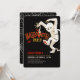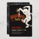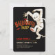 Convite de aniversário de Halloween do menino; mostra uma múmia legal na frente e um padrão de teia na parte de trás.