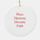 Este adorável ornamento traçado apresenta um mapa mundial cercado por símbolos dourados de 12 grandes religiões do mundo, simbolizando a diversidade global das crenças espirituais e a harmonia entre elas. Representam-se os símbolos de Bahá'í, budismo, cristianismo, confucionismo, hinduísmo, islamismo, jainismo, judaísmo, espiritualidade nativa (roda médica), shinto, sifismo e taoismo. Cada símbolo de ouro é cuidadosamente posicionado ao redor do mapa para inspirar unidade e paz em todas as crenças (nota: a cor do ouro não é metálica). Este ornamento serve como uma expressão significativa do respeito inter-religioso e dos valores partilhados de amor, compreensão e harmonia. É uma adição perfeita a qualquer decoração de férias, celebrando a beleza da diversidade espiritual no mundo inteiro.