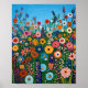 Esta pintura vibrante retrata um campo de flores silvestres sob um céu azul brilhante. Apresentando margaridas, papoilas e outros florins em tons de laranja, rosa, vermelho, azul e branco, o trabalho de arte capta uma cena exuberante e viva. O céu limpo com nuvens brancas lisas adiciona profundidade, enquanto o estilo impressionista com pinceladas ousadas e cores vívidas evoca um dia alegre e ensolarado. Perfeito para iluminar qualquer quarto com um toque da natureza.