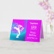 Um cartão divertido para qualquer amante de música em tons ombre roxos e azuis mostra um músico tocando seu saxofone com notas musicais girando nossa parte. O texto lê feliz aniversário e todo aquele jazz, mas por favor sinta-se livre para mudá-lo para palavras de sua própria escolha e não se esqueça de personalizá-lo com um nome e uma idade.
