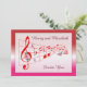 Este convite de casamento é decorado com uma escala musical vermelha, flores de Hibiscus e corações cor-de-rosa. Para obter a coleção completa de casamento, visite http://www.zazzle.com/zookies/collections