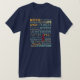 Camiseta musical com as seguintes palavras: Música, trombone, timpani, forte, vida, amor, tocar, violino, chifre francês, sinfonia, con brio, violonite, trompete, alegro, flauta, clarinete, oboé, orquestra, saxofone, staccato, basson, piano, vivace, sobtura