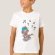 Musical Clown Joy T-Shirt. A cheerful clown with a blue hat and colorful outfit playing an orange guitar surrounded by musical notes.
