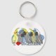 Quatro das mais populares mutações de cor da galinha, desenhadas como papagaios de desenho animado! Um cockatiel de lutino, um par de cinzentos normais, uma pérola feminina e um cockatiel de corda branca masculina estão todos juntos com "Eu Amo Cockatiels" escrito por baixo. Um chaveiro super fofo para qualquer amante de pássaros!