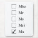 Uma lista de títulos com caixas de seleção. É selecionado o título Mx neutro em termos de gênero. Também estão listados a Srta., Sr., Sra. e Sra., com caixas de seleção vazias.